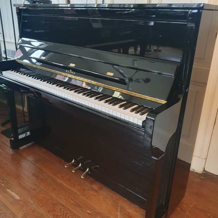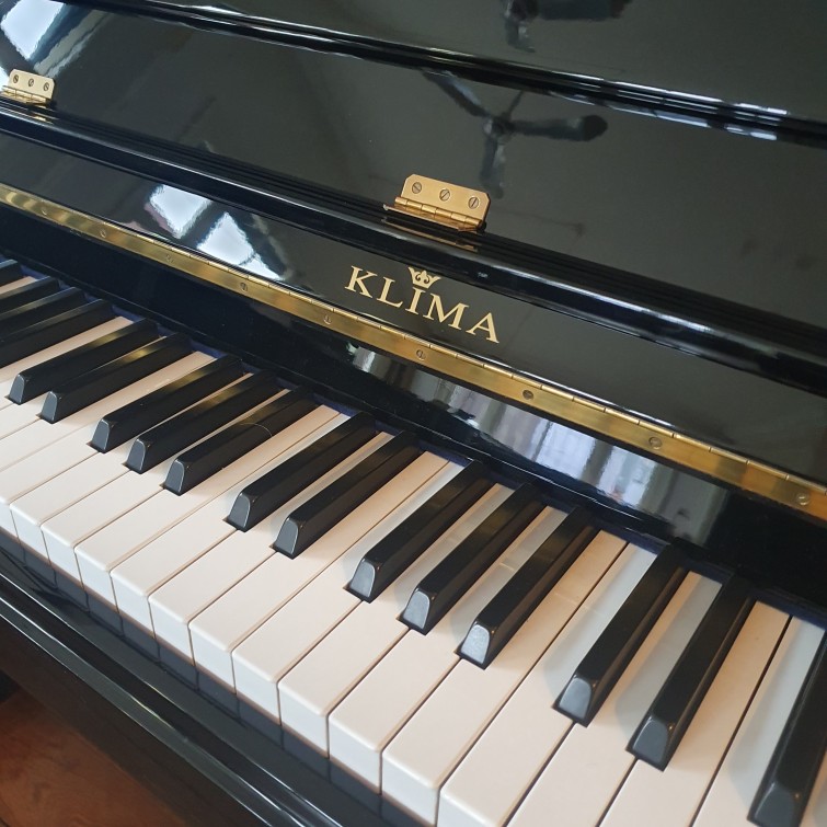 Mooie, zeer gave, Klima Model125 (125cm hoog) incl. nieuw ingebouwd AdSilent2 systeem. Zwart hoogglans, bouwjaar 1993. In perfecte staat. Goede toon en speelaard. Nu, als demo, inclusief het AdSilent2 systeem. Hiermee heeft u de keuze tussen akoestisch en/of digitaal. Wij kunnen dit systeem in vrijwel alle piano's inbouwen.